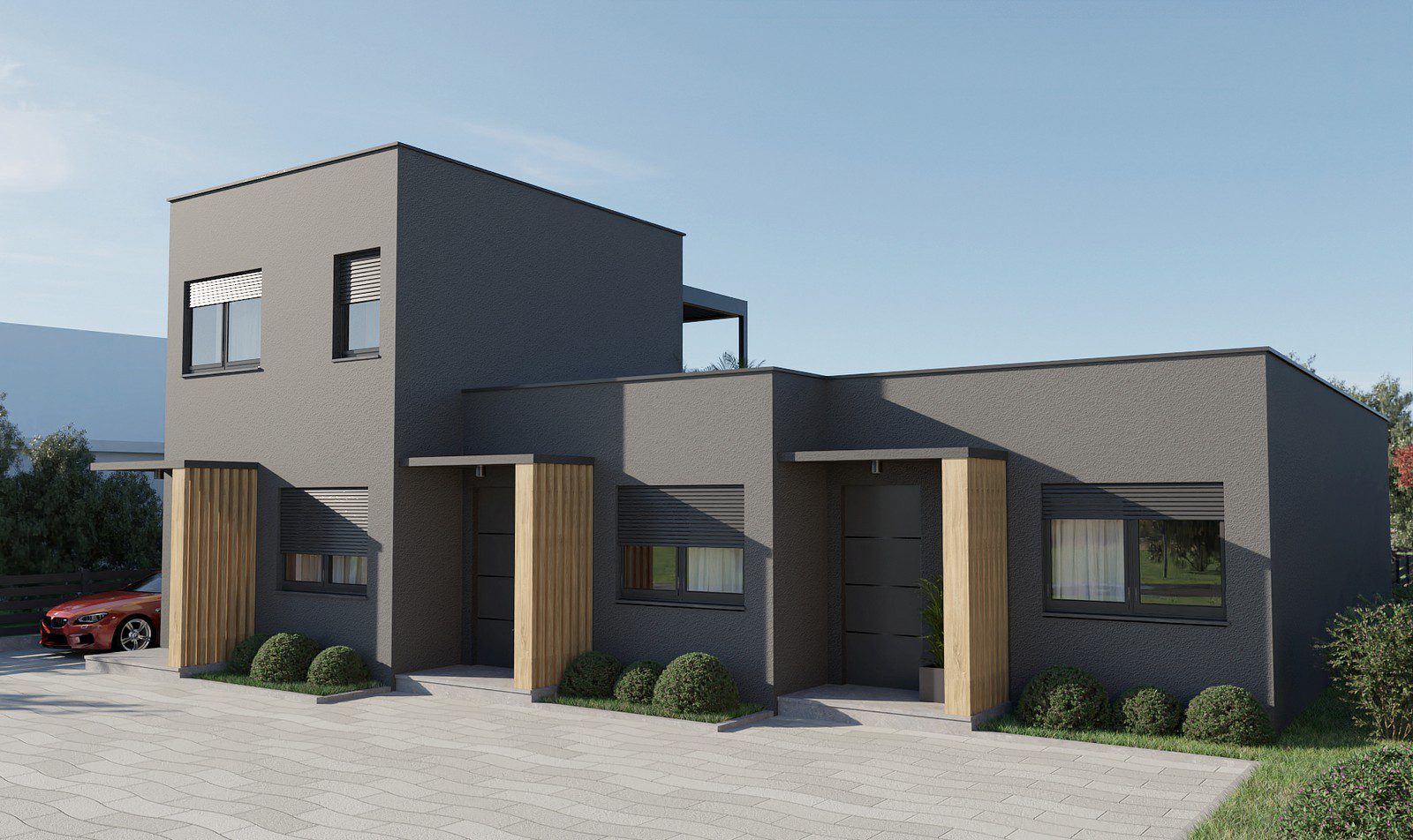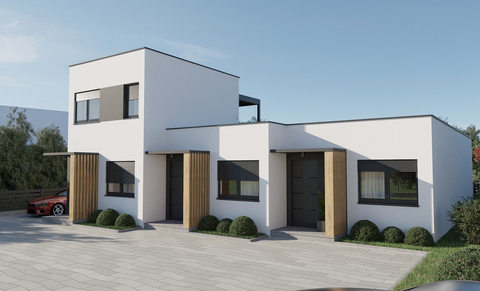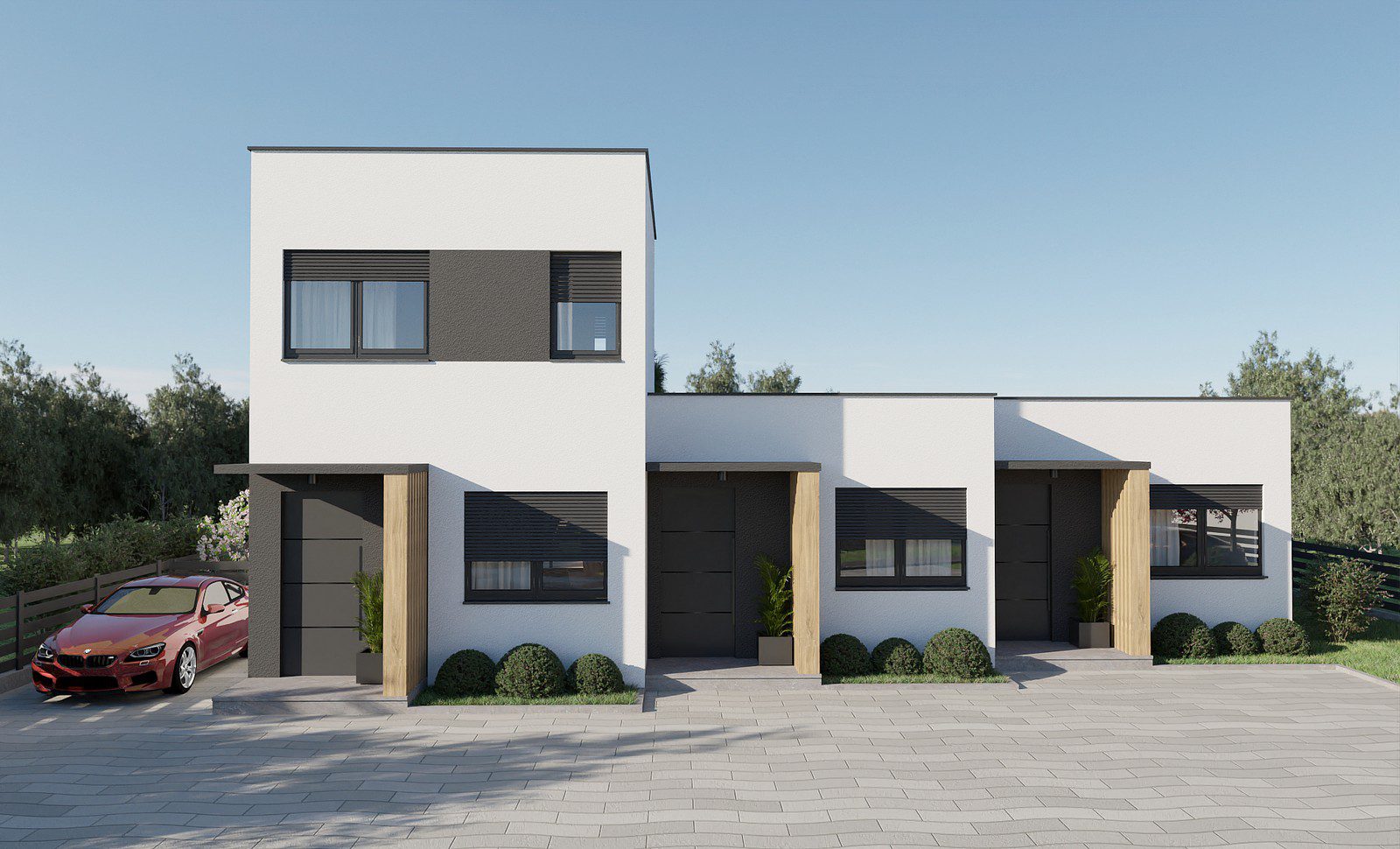 Naš prvi projekt predstavlja inovativni pristup gradnji – tri kućice Ova jedinstvena ideja kombinira funkcionalnost, estetiku i održivost kako bi stvorila domove prilagođene modernom načinu života. Svaka od ovih kucica je dizajnirana kao samostalna jedinica, ali istovremeno se savršeno integrira u niz, stvarajući skladan i jedinstven prostor.