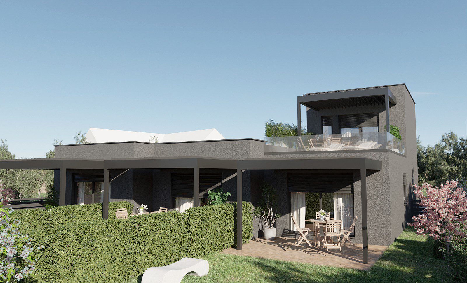 Estetika je također bitan dio našeg dizajna. Kombinacija modernih linija, funkcionalnih prostora i pažljivo odabranih materijala čini ove kucice privlačnim i udobnim domovima. Svaka od njih ima svoj jedinstveni karakter, ali zajedno stvaraju skladan ambijent.